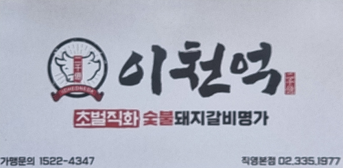"초벌직화 숯불돼지갈비명가 이천억 " 직영본점입니다. 가맹점도 문의 전번도 있네요.