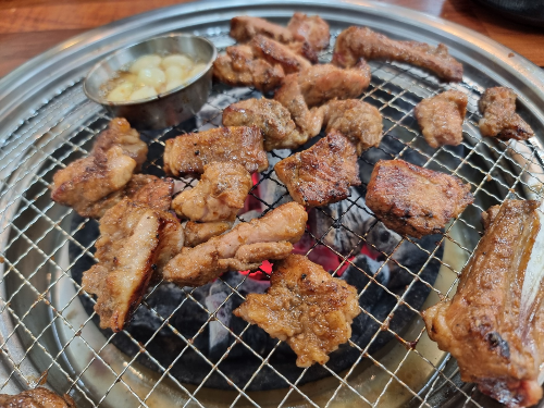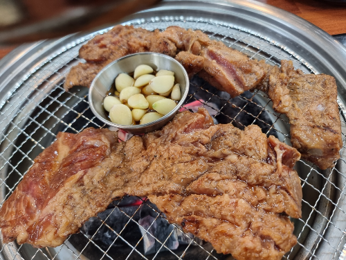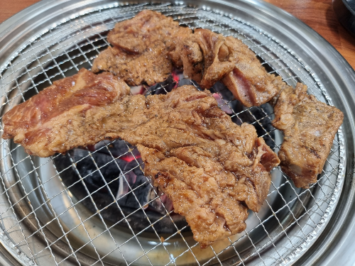 돼지갈비를 초벌해 주는 제작소가 식당 입구 왼쪽에 자리잡고 있어요. 돼지갈비를 초벌해 주는 곳은 못 본 것 같아요. 맛이 기대가 되지 않나요. 일하시는 분들도 친절하게 잘해주시더라고요.