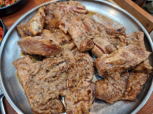 돼지갈비를 초벌해 주는 제작소가 식당 입구 왼쪽에 자리잡고 있어요. 돼지갈비를 초벌해 주는 곳은 못 본 것 같아요. 맛이 기대가 되지 않나요. 일하시는 분들도 친절하게 잘해주시더라고요.