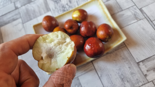✅단단함; 사과대추는 껍질을 눌렀을 때 탄력이 느껴지는 것이 좋습니다. 너무 물렁한 사과대추는 익은 사과대추이거나, 상한 사과대추일 수 있습니다.
