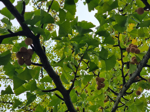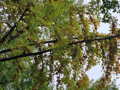 은행나무는 오래 살며 수형이 크고 깨끗하고 가을단풍이 매우 아름답고 병충해가 거의 없으며 넓고 짙은 그늘을 제공한다는 점 등 여러 가지 장점이 있어서 정자목 또는 풍치수로 심었고, 가로수로도 많이 심고 있는데 열매가 익으며 겉을 감싸고 있는 것이 냄새가 고약해서 싫어하는 사람들이 많네요. 은행나무는 암수한그루로, 암나무는 6월에 암꽃이 피고, 수나무는 7월에 수꽃이 피고 열매와 잎사귀 모두 약재로 쓰인다.