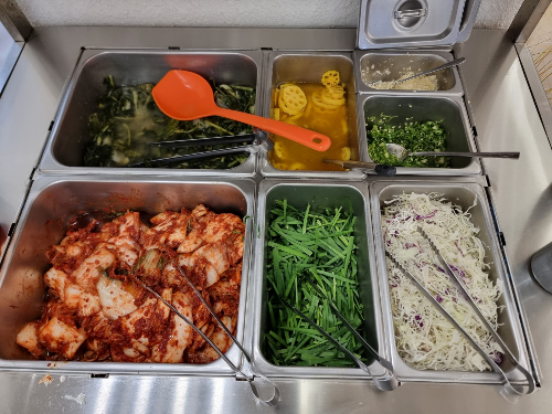 기본찬으로 나오는 찬이고 다 드시고 모자르면 셀프코너에서 드실 만큼 따로 가져다 드시면 됩니다. 물론 욕심을 내시다가 남기시면 서로 곤란하지요.