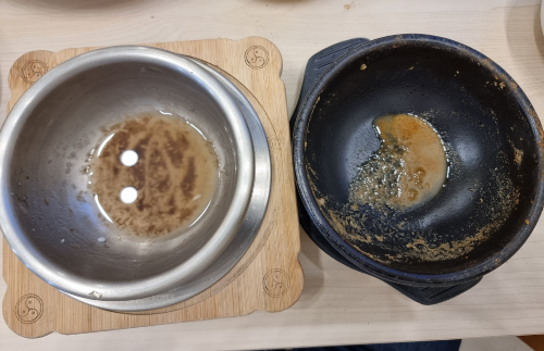 솥밥은 덜어내고 누룽지에 다듯한 물을 부어 숭늉을 만들어 고소하면서 부드러운 맛을 느끼시다 보면 어느새 그릇들에 있는 양들은 줄어들고 줄어드는 만큼 내배는 불러오고야 말았지요. 너무 맛나게 먹었나?