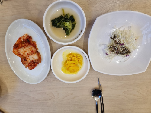 기본찬으로 나오는 찬이고 다 드시고 모자르면 셀프코너에서 드실 만큼 따로 가져다 드시면 됩니다. 물론 욕심을 내시다가 남기시면 서로 곤란하지요.