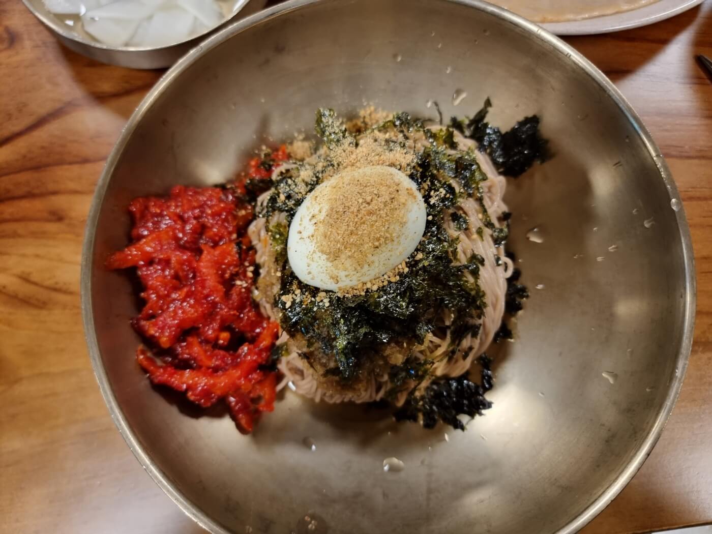 회막국수와 들기름막국수와 메밀김치전, 옥수수막걸리도 뭄절이라 이동막걸리를 주문을 했는데 기다리는 시간도 좀 길고 첫 이미지가 썩 좋지는 않았네요. 그다음은 기본 찬으로 나온 찬을 다 먹고 셀프코너로 가 보았는데 빈접시 들고 가서 고스란히 빈접시도 오게 돼서 물어보니 다 소모가 됐다는 대답이 오네요. 장사하는 집에서 기본찬이 떨어지면 그다음 날도 준비가 잘 될까 싶어요.