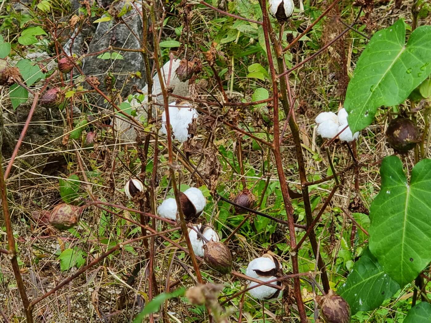 이것이 무엇인지 아시는 분들이 많지 않을 것 같아요. 옛날에는 많이 있었는데 요즈음에는 이용하는 것이 많지를 않아 화단이나 조경용으로 구경할 수 있는 목화입니다. 솜이라고 해야 빨리 알아들을까요?