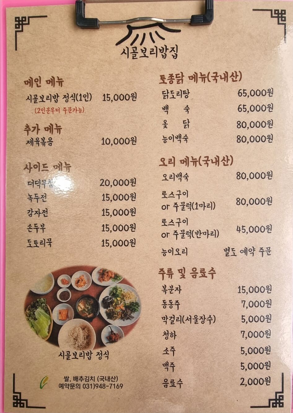 파주 보광사근처에 있는 시골보리밥집은 건강하고 맛있는 보리밥을 즐기기에 좋은 곳으로 특히, 시골의 분위기를 느끼며 식사를 하고 싶다면 시골보리밥집을 적극 추천하며 시골보리밥집은 보통 시골집 같은 분위기를 연출합니다. 실내에는 나무로 된 테이블과 의자가 놓여 있고, 창밖으로 푸른 자연을 감상할 수 있습니다. 야외 좌석도 마련되어 있어, 계절에 따라 야외에서 식사를 즐길 수도 있습니다.