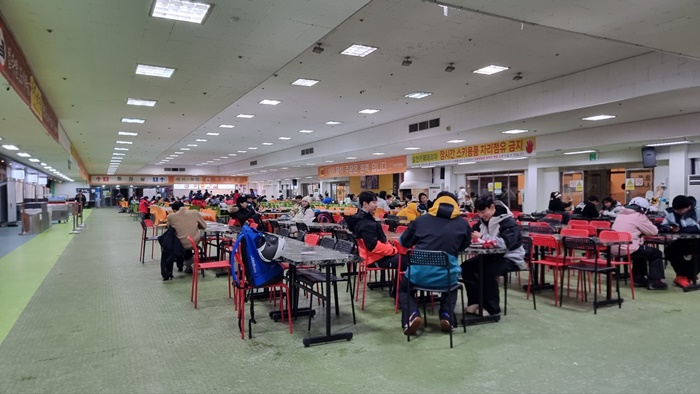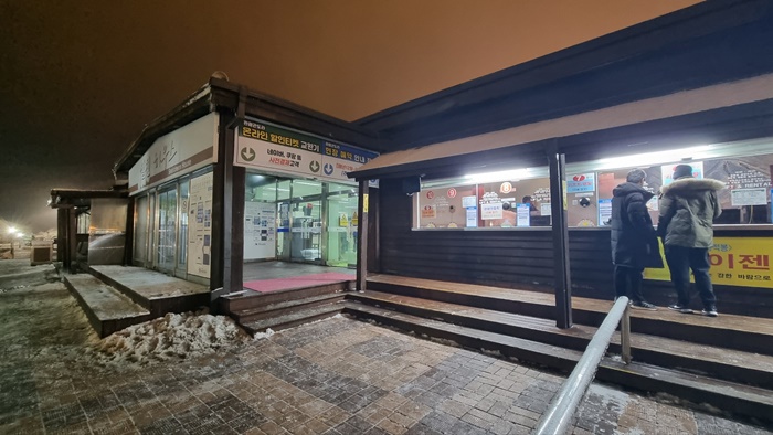6시 30분에 야간스키장이 개장을 하니 일찍 온 스키 만든 이곳에서 휴식을 취하며 시간을 기다리고 있어요.