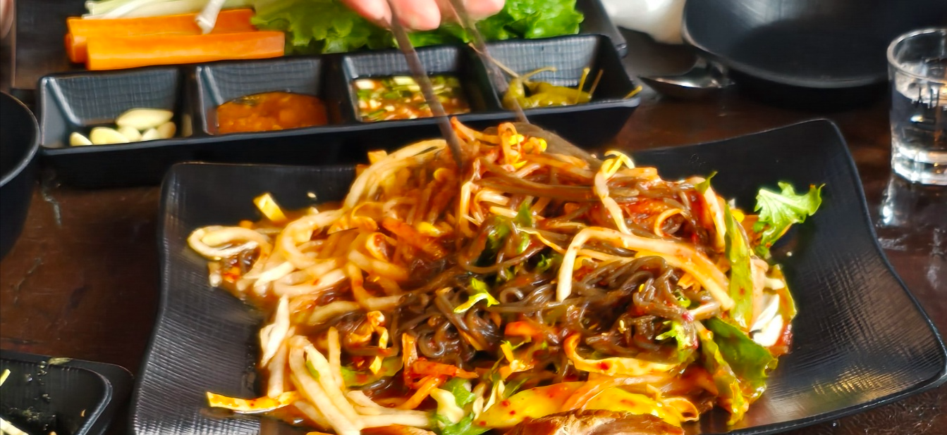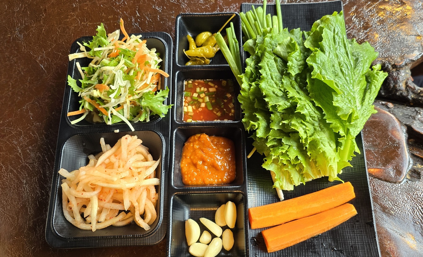 무채: 톡 쏘는 무채가 느끼함 없이 깔끔하게 즐길 수 있도록 도와줍니다.