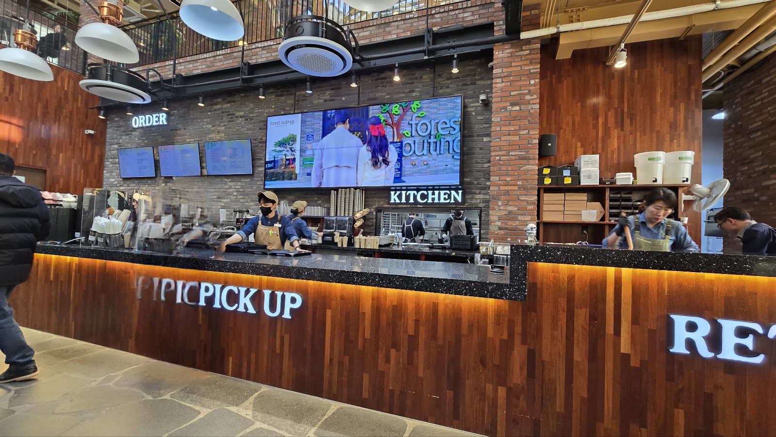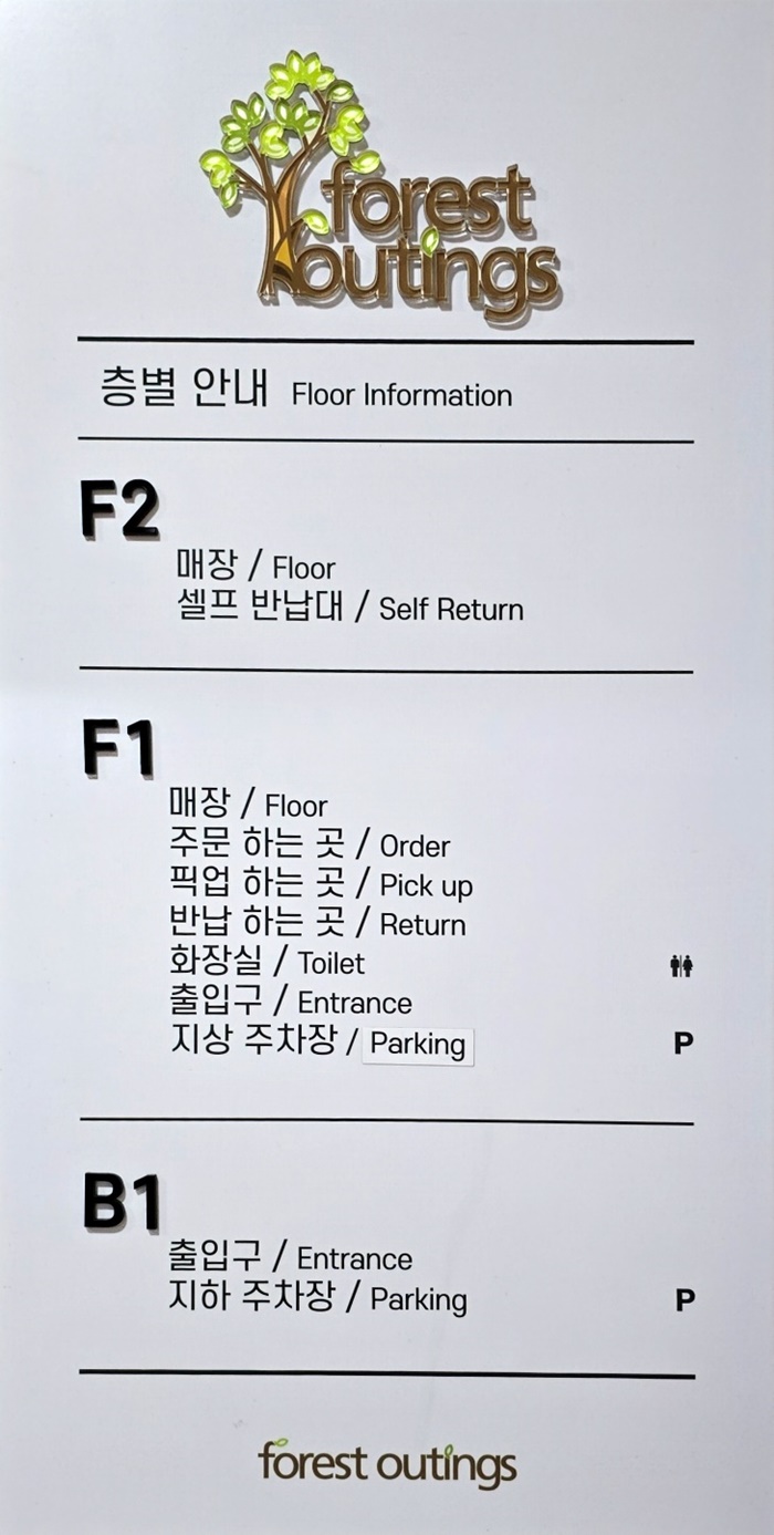 포레스트 아웃팅스는 숲 속을 테마로 한 카페로, 가게 내부 곳곳에 나무와 식물들이 배치되어 있습니다. 천장이 높아 탁 트인 느낌을 주고, 자연광이 잘 들어와 밝고 아늑한 분위기를 자아냅니다. 가게 내부에는 1층에서 3층까지  다양한 좌석이 마련되어 있습니다. 2인용 테이블, 4인용 테이블, 소파 좌석 등이 있으며, 숲 속을 보며 편안하게 휴식을 취할 수 있는 공간도 있습니다.