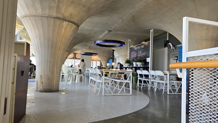 🍀주차장이 넓은데 평일에는 괜찮은데 휴일이나 주말에는 복잡합니다. 주차장에 주차를 하고 카페 안으로 들어가면 1층에는 주문을 하고 베이커리도 함께 고르면 되고 1층에도 테이블이 있어서 1층에서 담소를 나누어도 좋고 2층으로 올라가면 한강이 내려다 보이니 뷰가 좋아요. 물론 1층에서도 한강은 보이는데 2층만 못해요.