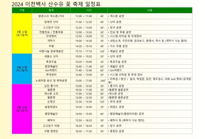 ✅산수유꽃 풍물놀이: 산수유꽃 풍물놀이팀의 공연을 관람할 수 있습니다.