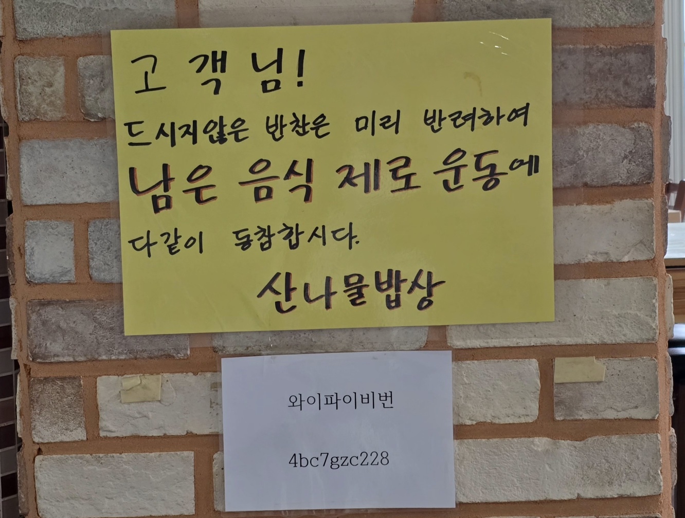 산나물 밥상은 내부가 깔끔한 모습이고 테이블 간격도 있고 내실 같은 분위기의 내부도 있어서 단체나 모임 같은 것을 해도 좋아요. 혼란스러운 모습이 아니라 잘 정돈된 느낌이어서 식사하기에도 부담이 없어요. 맛나게 먹을 준비를 해야겠어요.