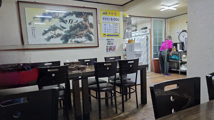 ✅토속집 쌈밥정식집은 말 그대로 쌈밥정식은 자신감에 차있는 단일 메뉴로 영업을 하는 집입니다. 단일 메뉴로 영업을 하는 것은 단점보다 장점이 많은 이유일 것입니다. 빠른 회전과 신선한 재료는 손님들이 더 잘 알고 찾아와 주니까요. 내부 모습도 가지런하게 놓인 테이블과 송학이 있는 한 폭의 동양화가 자리매김을 하고 있어요.