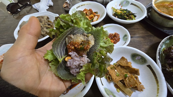 여행을 하면서 멋지고 좋은 곳 보며 다닐려면 속이 든든해야 어디든 잘 다니며 구경을 할 수 있기에 먹는 것이 무엇보다 중요합니다. 그 지방에 갔을 때 풍기는 인상도 중요한 요소 중에 하나인데 이번 진해 여행에서 맛본 토속집 쌈밥정식은 아침인데도 멸 무리 없이 맛나게 먹을 수 있어서 첫인상이 좋았습니다.