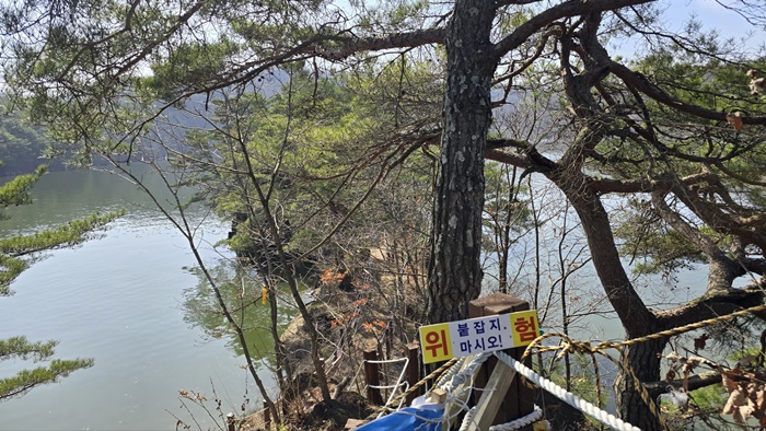 🍀부소담악은 대청호 둘레길로 800m 정도에 추소정이 있는데 부소담악의 장관을 감상할 수 있는 정자로 능선부 산행은 협소한 관계로 위험해서 능선길을 막아 놨네요. 아래가 낭떠러지 (주의 필요)