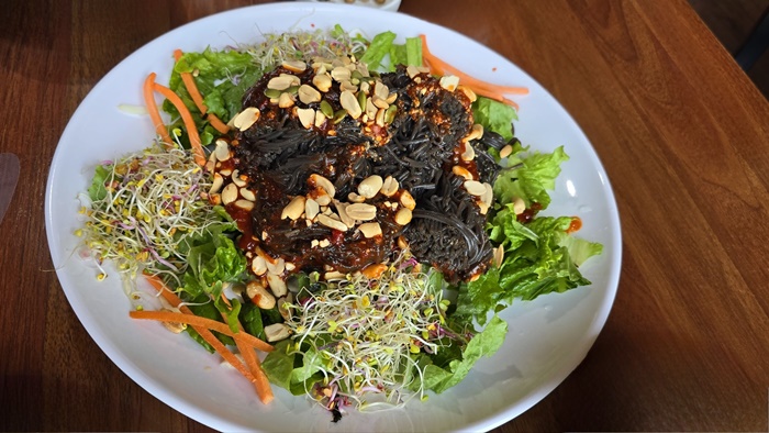묵정식에 나온 것들을 맛나게 즐겁게 먹고 테이블에 올라온 것들을 싹 다 먹어 치우니 기분도 좋아지고 건강을 찾은 듯싶어요. 도토리묵에는 수분이 많아 포만감을 주어 다이어트에도 좋고 노화를 방지하고 성인병을 예방하는 효과가 있다고 하잖아요. 다만 변비가 있는 분들은 주의를 해야겠지요. 오늘도 기분 좋게 잘 먹고 건행들 하세요.