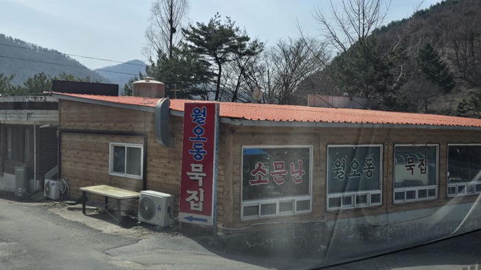 월오동 묵집은 넓은 주차장에 주차를 하고 때에 따라서는 대기를 해야 할 때가 있다. 대기는 밖의 의자에서 대기를 해야 하는데 순서가 되면 이름을 불러 줍니다. 호명이 되면 신발을 벗고 안느로 들어가 지정해 주는 테이블로 가서 주문을 합니다.