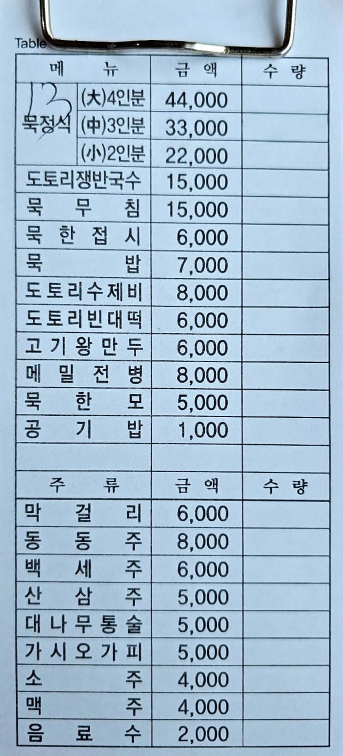 ✅묵정식 大(4인) 44,000 中(3인) 33,000 小92인) 22,000