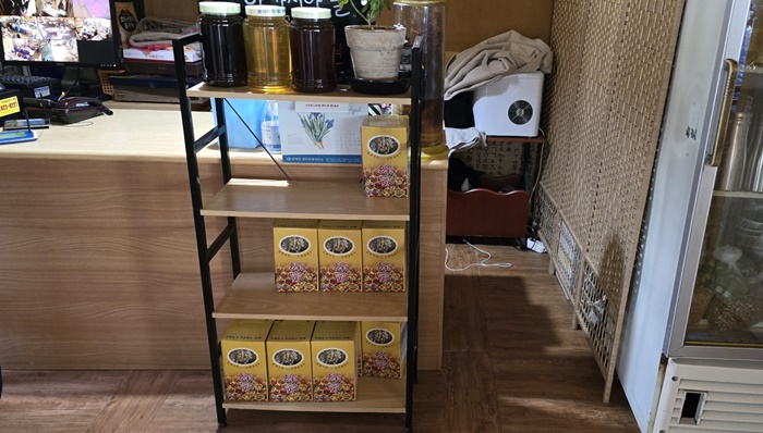 주문을 하고 4~5분 정도 되면 쫘악 깔아 줍니다. 직접 재배한 것과 꿀도 채취해서 판매를 하고 있네요.