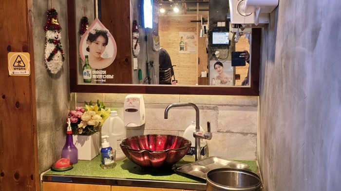 내부모습 중에 손 씻는 곳이 들어가 자리에 앉기 전에 보일만한 곳에 있다는 것이 좋았네요. 옷매무새도 챙겨보고 위생관리에도 신경 쓰고 괜찮은 것 같았어요. 분위기도 살리는 것 같아요.