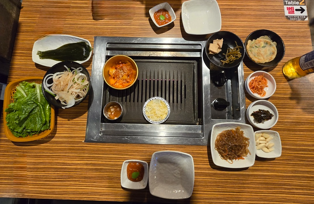 ✅일반적인 기본찬: 잡채, 고추절임, 무절임, 작은 전, 생채, 깻잎절임, 생마늘, 양파채, 명이나물, 상추, 고추