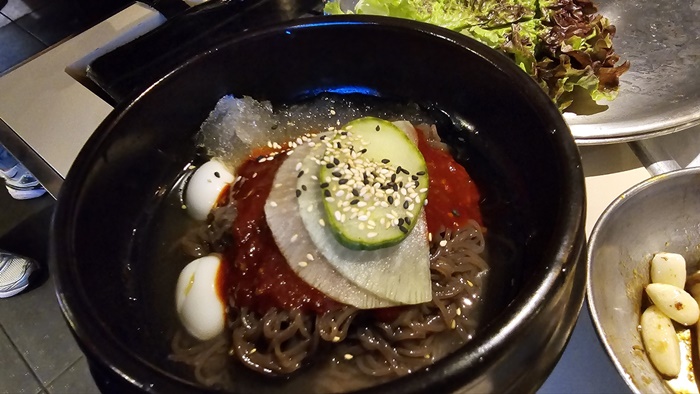 배부르게 잘 먹었네요. 깔끔하게 먹고도 모자람이 있을 땐 입맛 당기는 추가메뉴들이 있는데 김치말이밥이 제 입맛에 딱이더라고요. 그리고 이스리 안주용으로 꼬들살을 곁들이고 그래도 양이 안 차면 다른 메뉴도 있는데 다른 동료가 먹는 비냉, 물냉을 맛을 보았지요. 그래서 너무 많이 먹게 됐네요. 기분 좋게 먹었으니 0칼로리라 생각하고 맘 편하게 있기로 했네요. 늘 건행하세요.