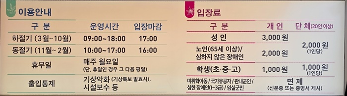 ✅영업시간 3월 ~ 10월 (하절기) 09:00 ~ 18:00 입장마감 17:00