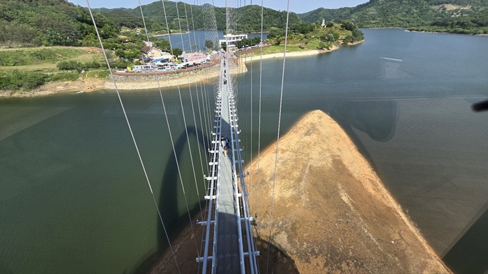 ✅출렁다리는 붕어섬과 요산공원을 연결하며, 섬까지 걸어서 갈 수 있는 유일한 통로로서 다리 위에서 옥정호의 아름다운 풍경을 감상할 수 있으며, 특히 주탑 전망대에서 내려다보는 풍경은 매우 장관입니다.