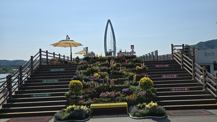 ✅출렁다리: 붕어섬과 요산공원을 연결하는 현수교입니다. 다리 위에서 옥정호의 아름다운 풍경을 감상할 수 있습니다. ✅꽃밭: 봄에는 벚꽃, 튤립, 수선화, 가을에는 코스모스 등 다양한 꽃들이 만개합니다.