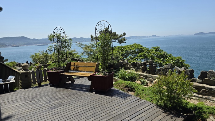 ✅바다 풍경: 죽도 상화원은 바다를 바라보는 곳에 위치하고 있어 아름다운 바다 풍경을 감상할 수 있습니다. 특히, 회랑을 따라 걸으면서 바다를 바라보는 풍경은 매우 아름답습니다.