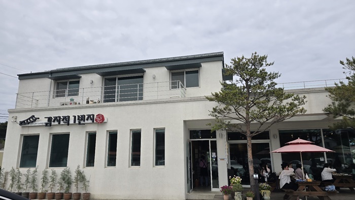 ✅하얀색 2층 건물로, 옹심이 마을 초입에 위치 '감자적 1번지'라는 간판이 크게 걸려 있어 쉽게 찾을 수 있음