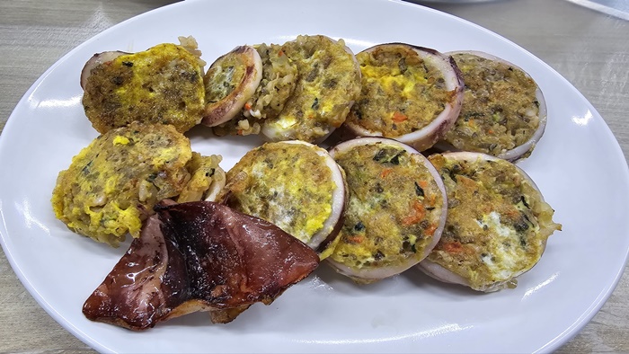 ✅별미 오징어순대를 먹을 때에는 조심해야 할 것이 있는데 아랫부분을 드실 때 터지지 말라고 꼽아 놓은 이쑤시개를 체크하셔야 합니다. 모르고 잘못 드시면 다칠 염려가 있으니까요.