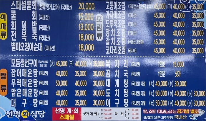 🍀선명회 식당 메뉴소개
