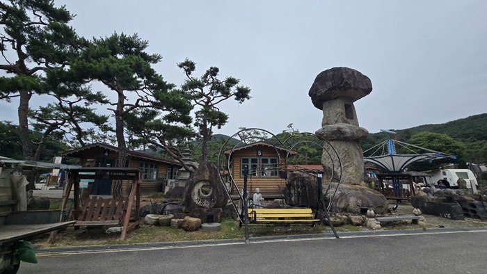 공주를 여행하면서 지나는 길에 독특한 겉모습에 호감을 느끼고 가던 길 돌려서 주차장으로 들어가서 살펴보기로 했는데 처음엔 조각 공원인가 하는 의문을 갖게 되는 전체적인 분위기에 빠져 둘러보게 되는데 공원이 아니라 민간이 운영하는 카라반, 캠핑장소로 허가받아 운영하는 곳이더라고요. 멋들어지게 꾸며 놓아서 머물고 싶었는데 계획에 없던 터라 알아만 보고 다음을 기약해야겠어요.