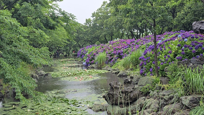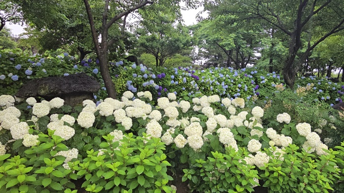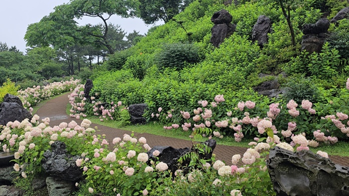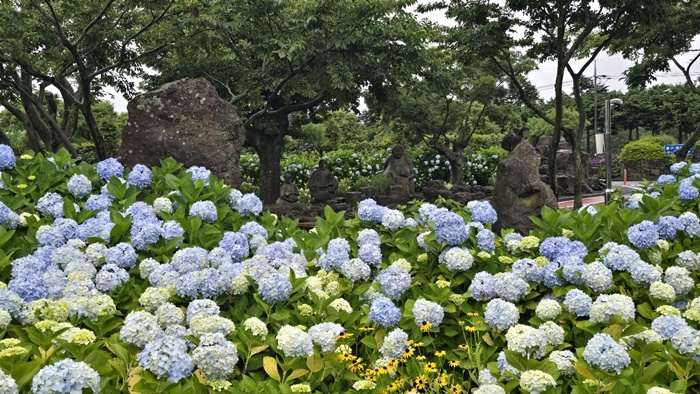 6월과 7월에 볼 수 있는 여름꽃으로 수국 만한 꽃이 또 있을까 하는 의문을 풀기에는 이곳 제주 동쪽송당 동화마을 만한 곳이 또 있을까요. 말로는 표현할 수 없을 정도로 잘 꾸며 놓았으니 구경해 보는 것도 좋은 것 같아요. 제주도에 많고 육지에 없는 현무암으로 1차 준비를 하고 수국꽃으로 2차를 꾸며 자연 속에 핀 아름다움을 나타내게 되는 것 같아요. 구경 한번 해 보세요.