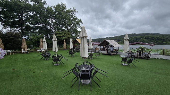 요즘 같은 장마철에 어디 멀리 가기는 부담이 되고 서울 근교 가까운 화성시 정남면 보통리 저수지에 근접해 있는 카페 토브(Tov)에서 2층 창가에 앉아 저수지를 바라보며 떨어지는 빗방울이 창가 유리를 타고 미꾸라지처럼 꼬불거리며 흘러내리는 모습을 그냥 멍하니 바라보고 있으면 모든 시름 걷어내고 시간을 초월해 봅니다.  카페 토브(Tov)는 에전에 더비안코카페가 새 단장을 한 곳입니다.