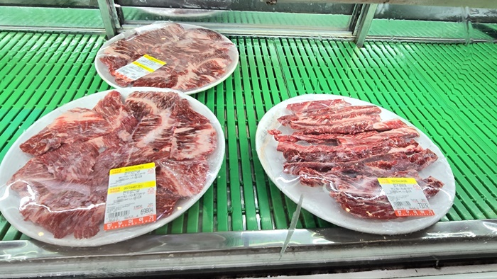 예전에 병점에 있을 때 여러 번 이곳 서수원 한우이야기를 찾았는데 멀리 양주로 가는 바람에 와 보지를 못 하다가 이번에 기회가 있어 찾아갔는데 내가 간 시간에 붐벼야 하는데 썰렁해서 내가 잘못 알고 왔나 하는 생각이 들었네요. 그래도 어차피 왔으니 옛 생각을 하면서 먹어 봐야겠지요. 그래서 늘 하던 대로 정육코네에서 기웃거리며 먹고 싶은 고기를 집어 들고 안내해 준 자리로 갔네요.
