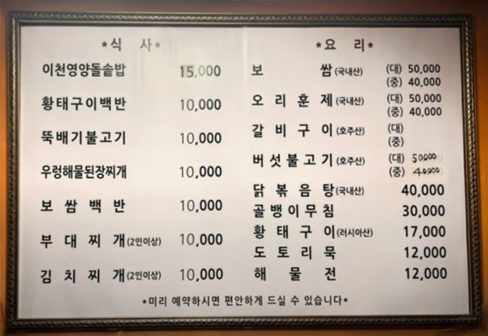 👉황태구이백반 / 뚝배기 불고기 / 우렁해물된장찌개 / 보쌈백반 각각 10,000
