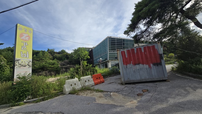 🍀지금 현재는 금월봉 입구에는 불은색을 칠한 컨테이너가 놓여 있어 차량은 들어갈 수가 없고 틈새로 사람만 잠시 들어갔다가 나왔네요. 금월봉 근처 청풍호로는 지금 도로공사 중이더라고요. 도로가 완공될 즈음 금빛달이 비치는 봉우리를 볼 수 있기를 기대해 봅니다.