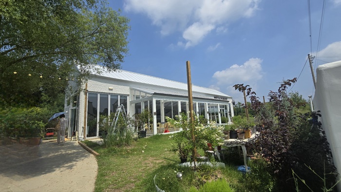 며칠 전 모임에 있는 지인이 몸이 너무 안 좋아 강화도를 찾게 됐는데 함께 가보게 된 요즘 강화에서 뜨고 있는 카페라고 하며 가게 됐는데 들어가는 길이 도로라고 하기에는 너무 좁고 농촌풍경 속에 찾아가기가 조금은 어려운 곳에 위치해 있는데 막상 들어가 보니 주차장에 차도 많고 방문객들도 많았는데 본 건물은 식물카페같이 식물들도 규모에 비해 많았는데 설마?