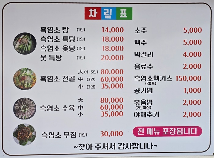 👉다소 높은 가격: 흑염소 요리는 일반적인 고기 요리에 비해 가격이 다소 높은 편입니다.