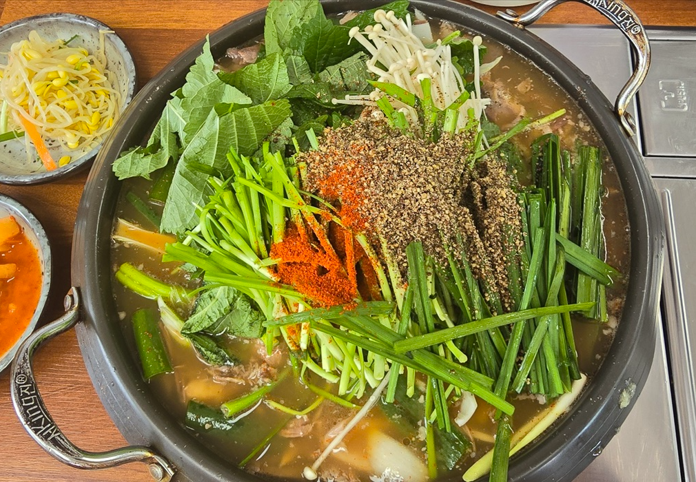✅흑염소 전골: 푸짐한 채소와 함께 끓여낸 흑염소 전골은 시원하고 얼큰한 국물 맛이 일품입니다. 흑염소의 특유의 향과 부드러운 식감을 동시에 느낄 수 있는 메뉴입니다.