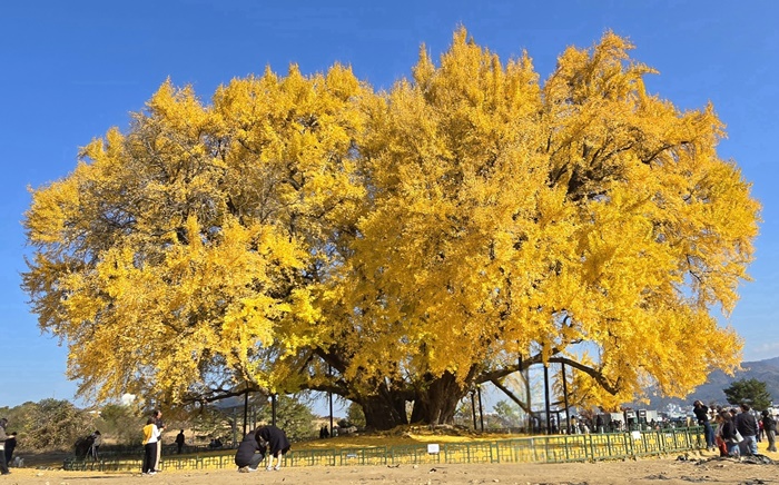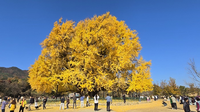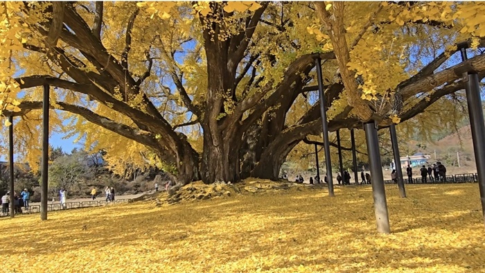 ✅가을 단풍의 절정: 가을이 되면 노랗게 물든 은행잎이 나무 전체를 뒤덮어 장관을 이룹니다.