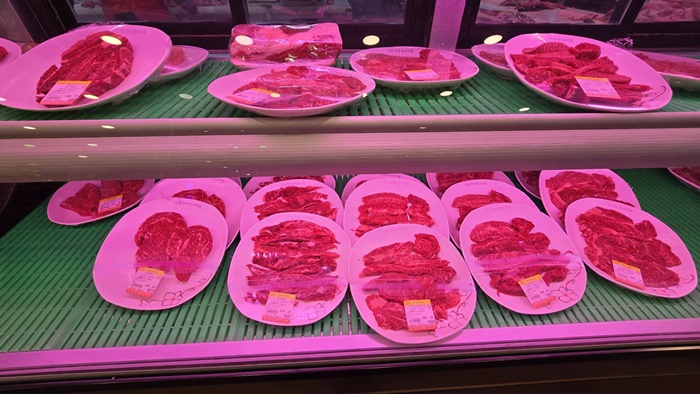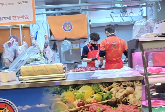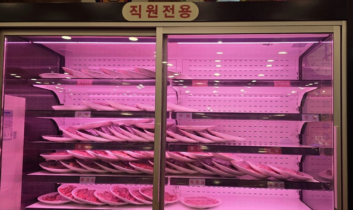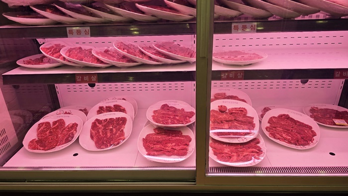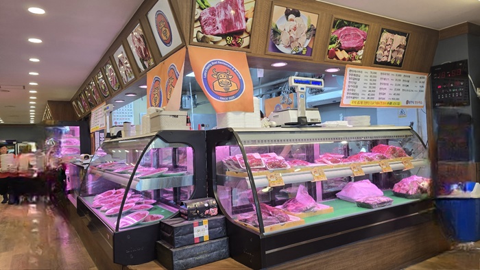 ✅정육 코너: 식당 내부에 정육 코너가 마련되어 있어, 손님들이 직접 고기를 고를 수 있습니다. 신선한 고기들이 진열되어 있는 모습을 볼 수 있으며, 고기를 고르는 재미를 더합니다.