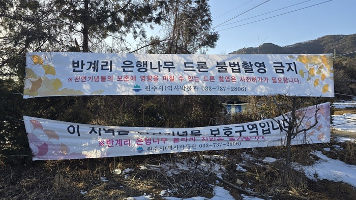 지난가을 온통 노랗게 물들었던 원주 반계리 은행나무의 수령이 과학으로 밝혀낸 수령이 1317년으로 밝혀져 세간의 관심을 끌었다. 천연기념물로도 지정이 되어 국가에서 관리를 하는데 요즘 주변에 말썽이 있는 느낌을 이번에 가봐서 느끼고 왔네요. 은행나무로 들어가는 진입로는 여전히 비포장으로 공사가 중단이 되어 있어 안타까움을 자아내게 되었는데 모든 문제가 원만히 해결되어 천연기념물이 돋보이는 멋진 모습을 기대해 보네요.