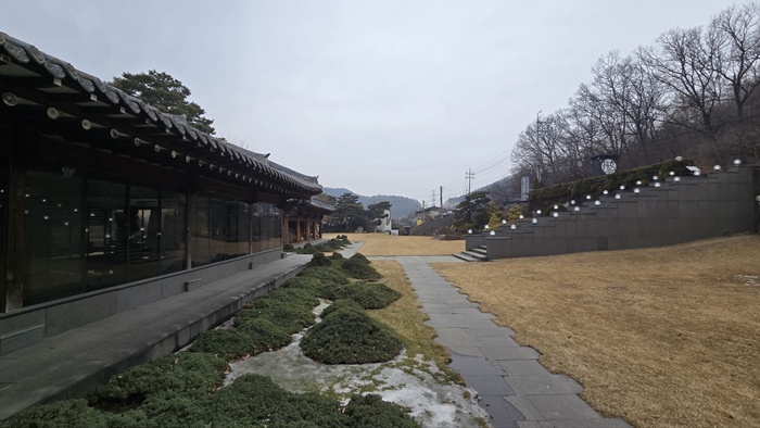 👉웅장한 한옥 건축물: 넓은 대지 위에 자리 잡은 웅장한 한옥 건물은 마치 궁궐에 온 듯한 느낌을 줍니다. 기와지붕과 나무 기둥 등 전통 건축 양식을 그대로 살려 한국적인 아름다움을 강조했습니다.