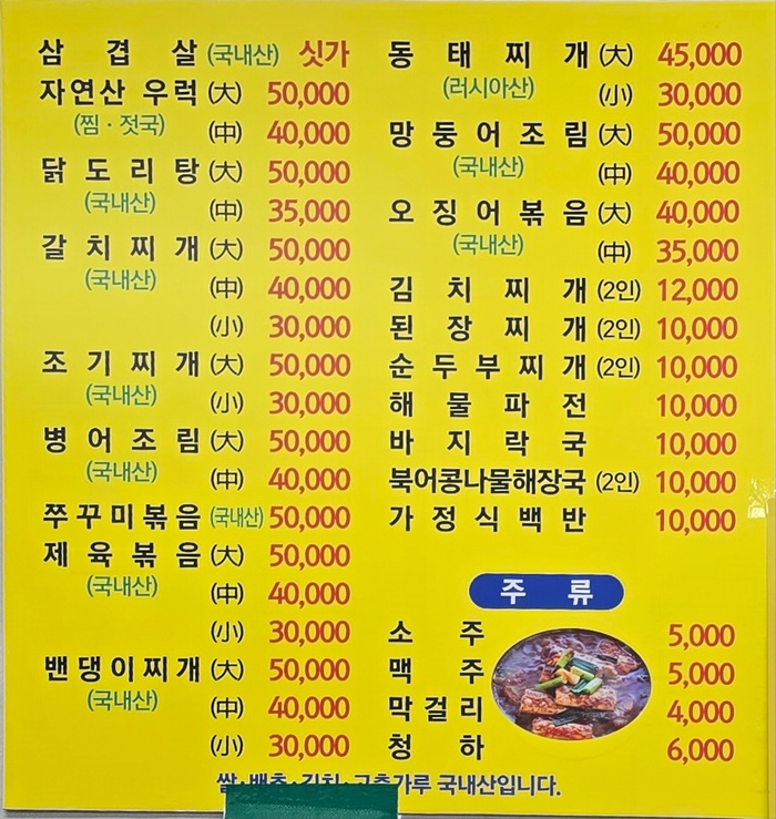 ✅만능 식당: 메뉴판에 병어, 갈치, 망둥이, 밴댕이, 조기, 동태 등 찌게종류가 즐비하지만 혹시나 다른 별미를 맛보고 싶다면 김혜숙 대표에게 요청만 하면 뚝딱하고 상에 올려줍니다.