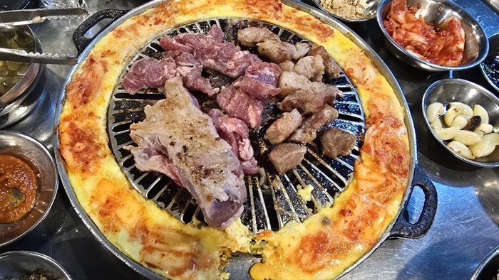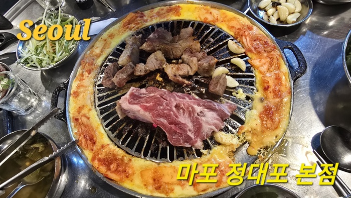 ✅계란 크러스트: 불판 가장자리에 계란물을 부어 익혀 먹는 계란 크러스트는 마포 정대포를 비롯한 마포 갈매기 골목의 대표적인 특징입니다. 고소하고 부드러운 맛이 일품입니다.