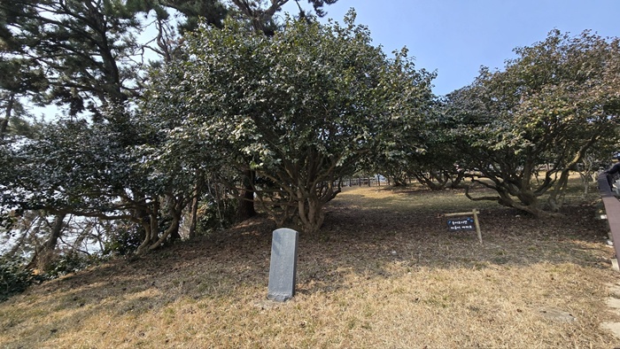 ✅군락지: 바닷가 언덕의 동쪽 자락에 500년 수령의 동백나무 80여 그루가 군락을 이루며 자라고 있습니다.